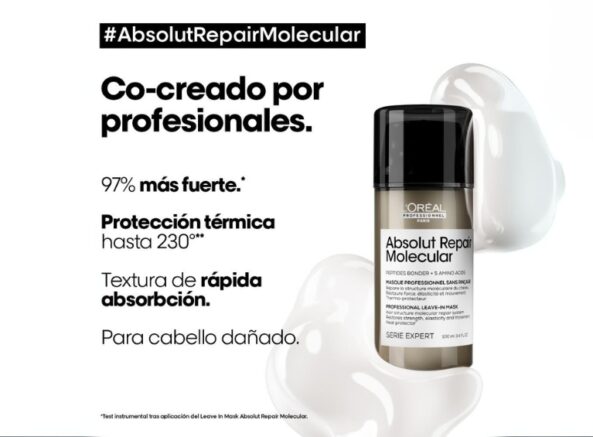 Dale a tu cabello el mejor tratamiento con la crema Leave In Absolut Repair Molecular de la marca L’Oréal Professionnel.